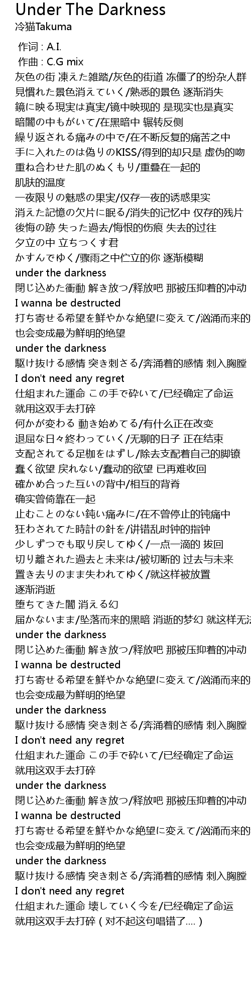 | [01:44.209] | under the darkness |