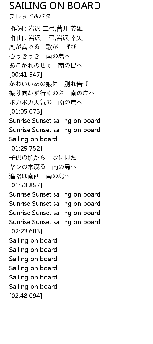 | [02:16.357] | Sunrise Sunset sailing on board |
