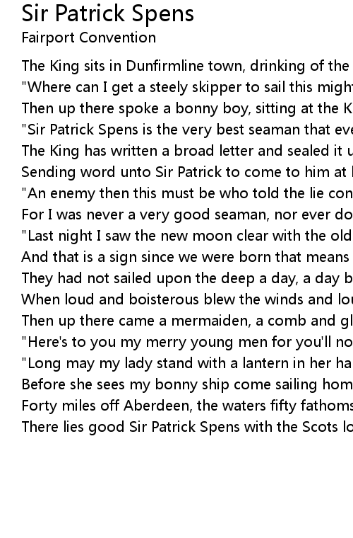 "Sir Patrick Spens is the very best seaman that ever sailed upon the sea" |