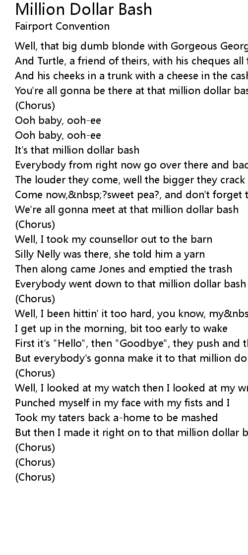 Everybody went down to that million dollar bash |
