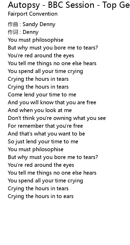 | Song | Autopsy - BBC Session - Top Gear 6/4/69 |