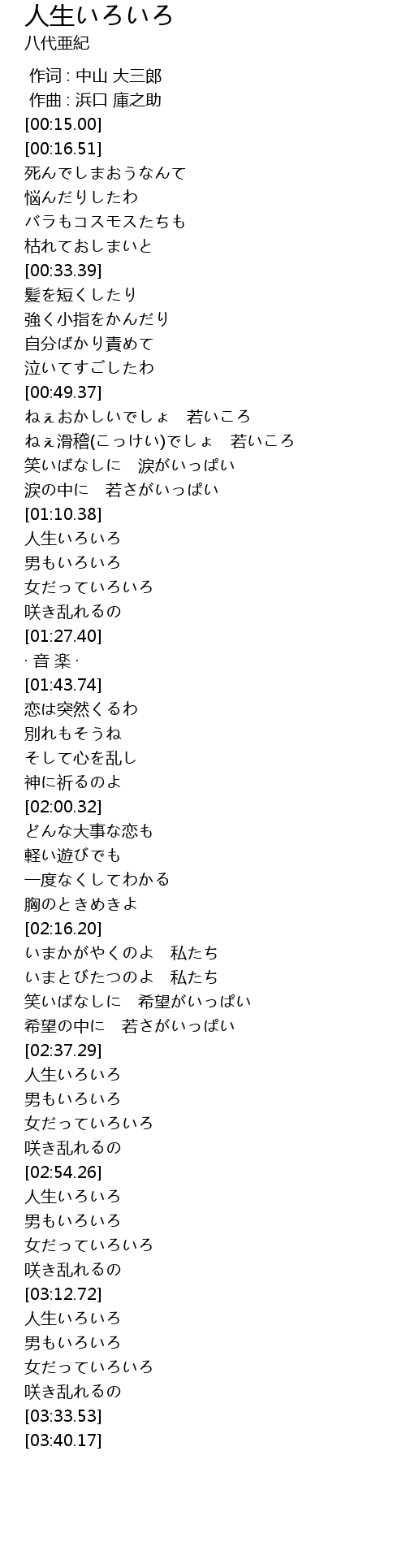 | [03:13.05] | 人生いろいろ |