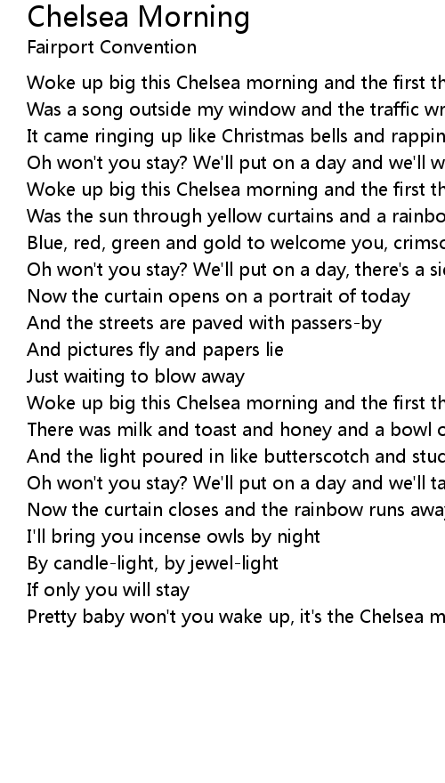 Oh won't you stay? We'll put on a day and we'll talk in present tenses