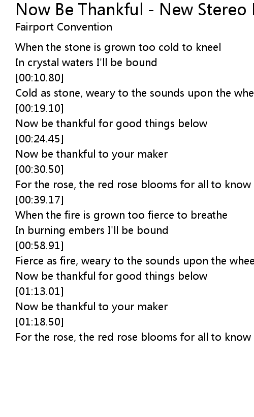 Now Be Thankful - New Stereo Mix Lyrics