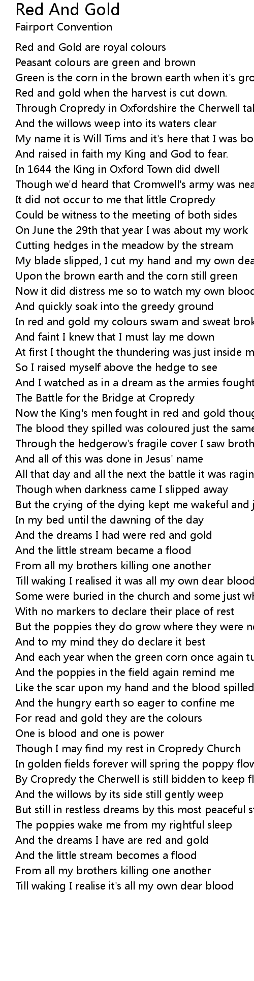 Now the King's men fought in red and gold though Cromwell's men were plainer