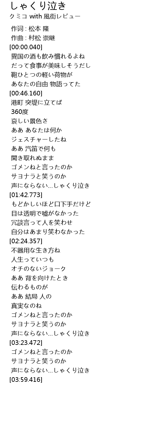 | [03:45.701] | 声にならない…しゃくり泣き |