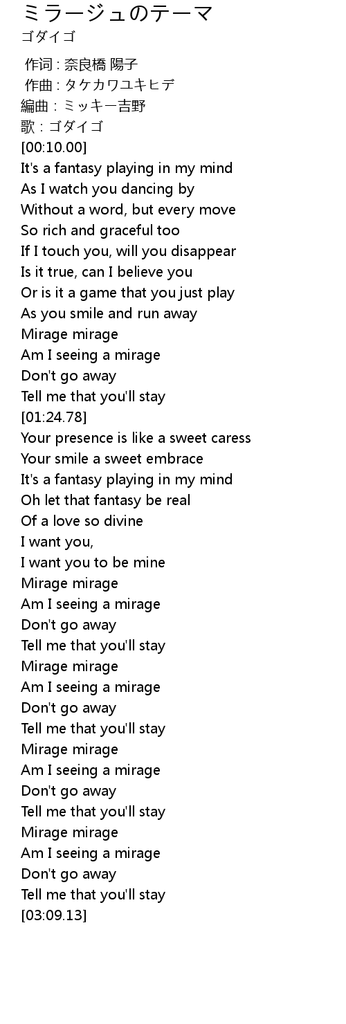 | [02:42.01] | Mirage mirage |