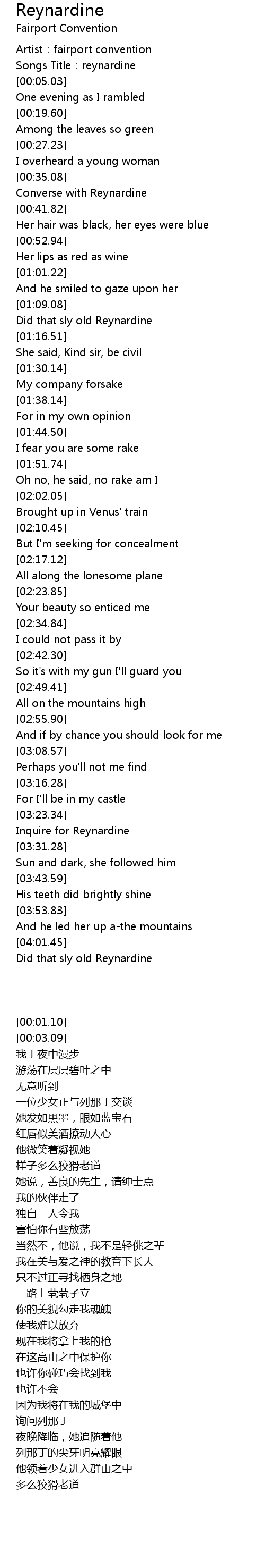 | [00:03.09] | Songs Title:reynardine |