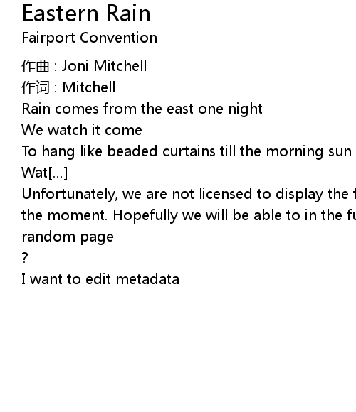 | Unfortunately, we are not licensed to display the full lyrics for this song at the moment. Hopefully we will be able to in the future. Until then, how about a | |