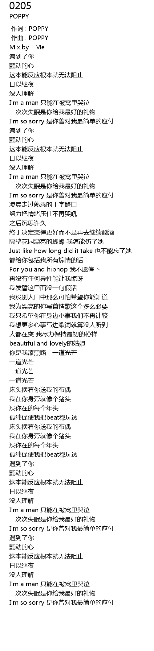 | [00:00.000] | 作词 : POPPY |