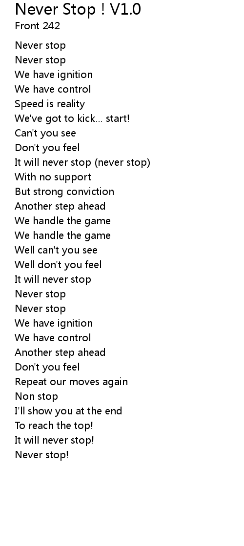 | Never stop | |
