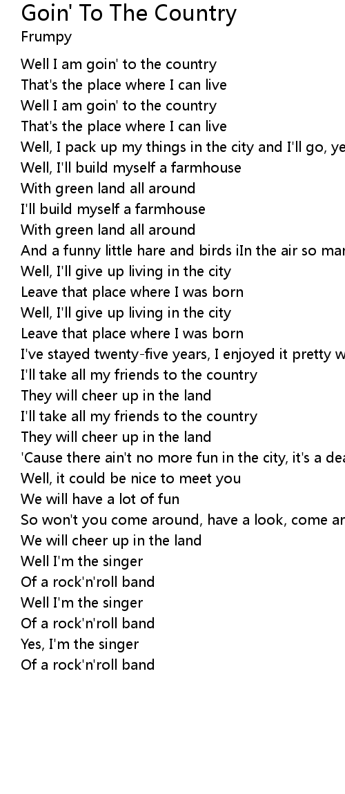Well I am goin' to the country |