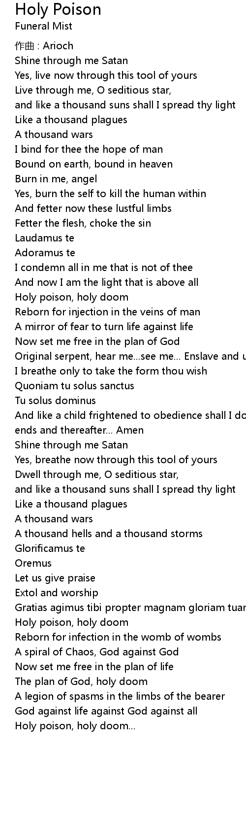 | Holy poison, holy doom... |