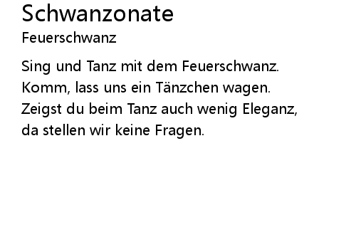 | Sing und Tanz mit dem Feuerschwanz. | |