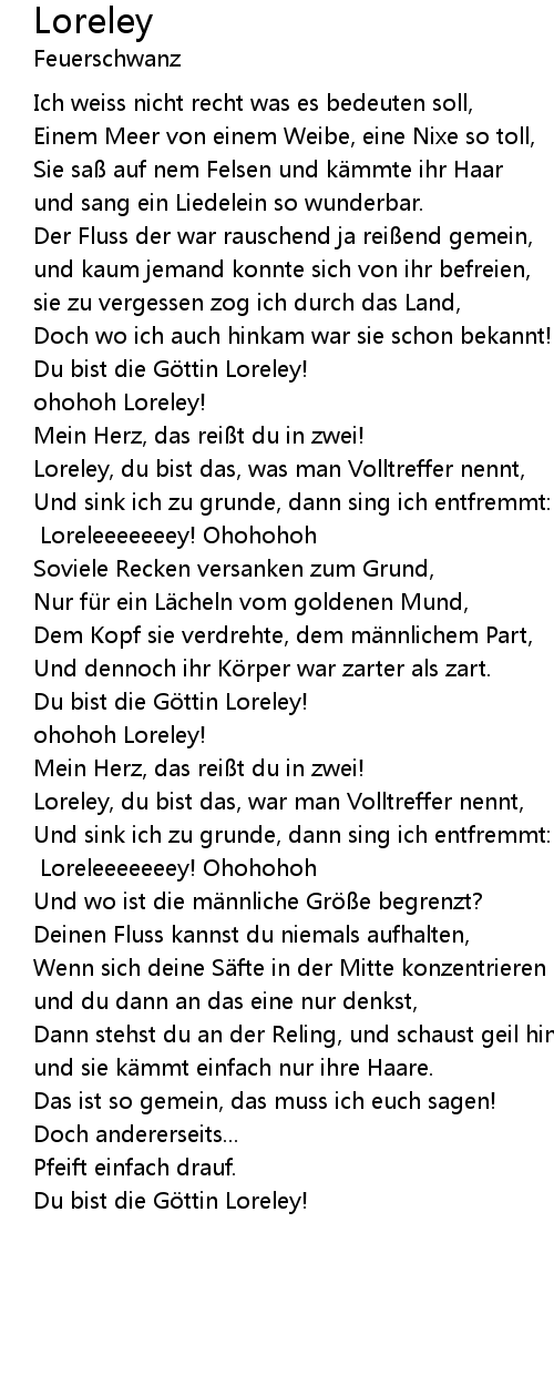 | Loreley, du bist das, war man Volltreffer nennt, | |