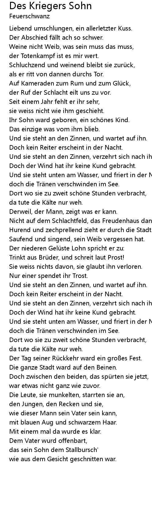 | Song | Des Kriegers Sohn |
