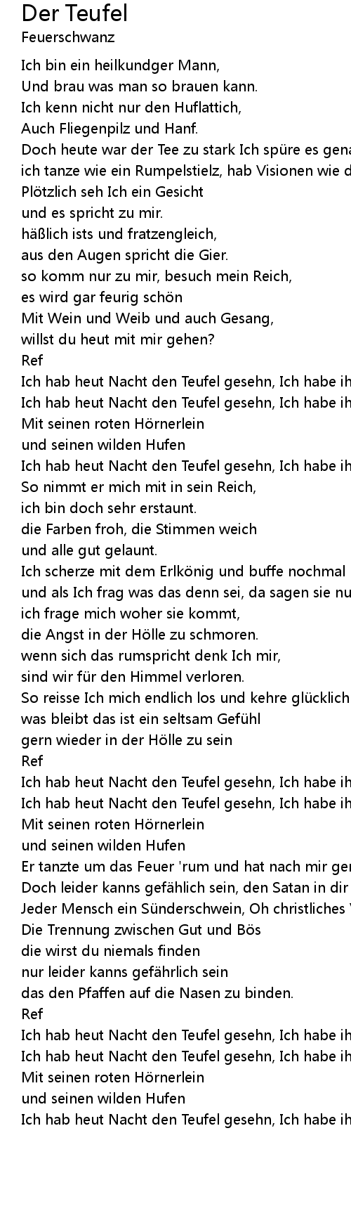 | Ich hab heut Nacht den Teufel gesehn, Ich habe ihn gesehen. |