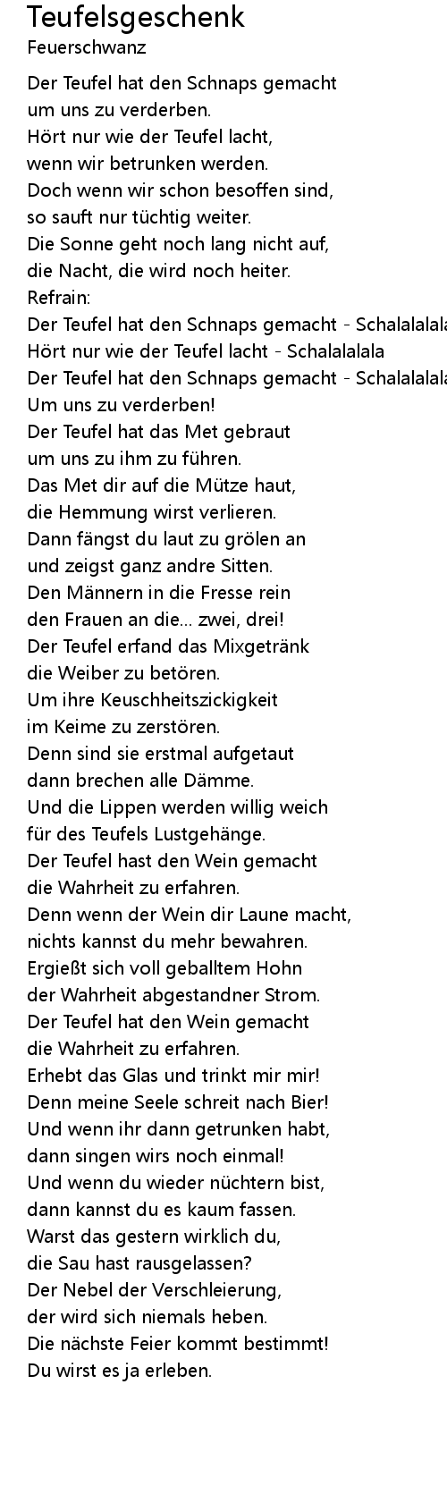 | Der Teufel hat den Schnaps gemacht Schalalalala | |