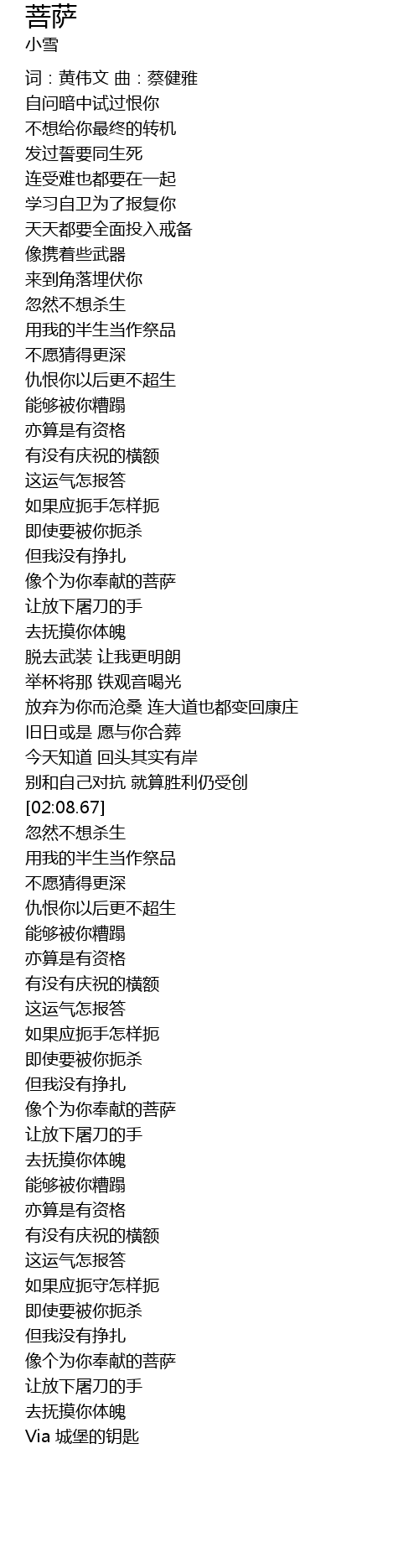 | [03:52.42] | Via 城堡的钥匙 |