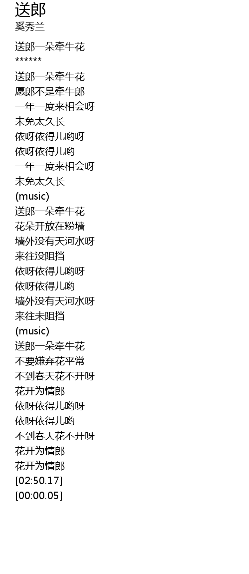 | [00:02.15] | sòng láng yī duǒ qiān niú huā |