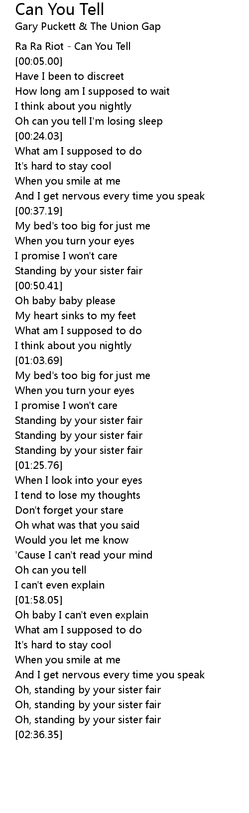 Oh, standing by your sister fair |