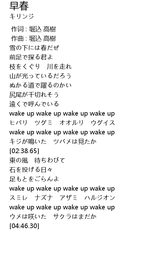 | [02:14.40] | wake up wake up wake up wake up |