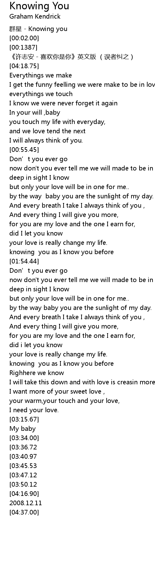 | [04:07.65][03:50.12] | knowing you as I know you before .... |