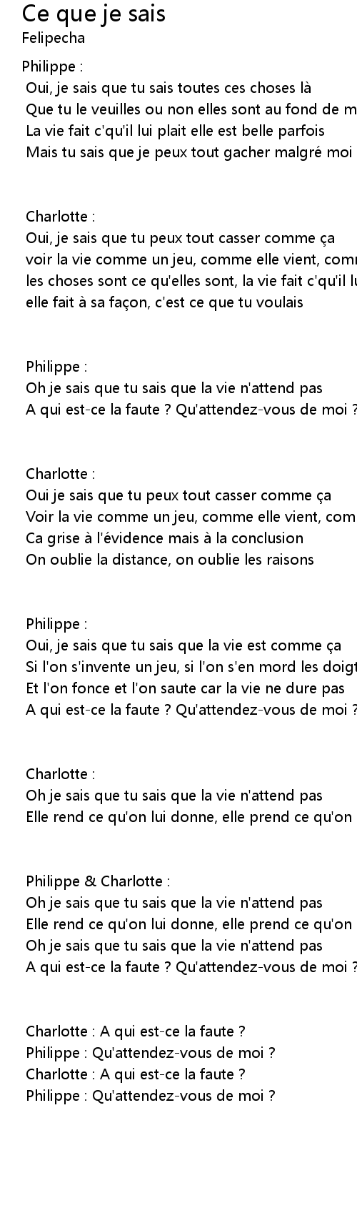 | Oui, je sais que tu sais que la vie est comme ça | |