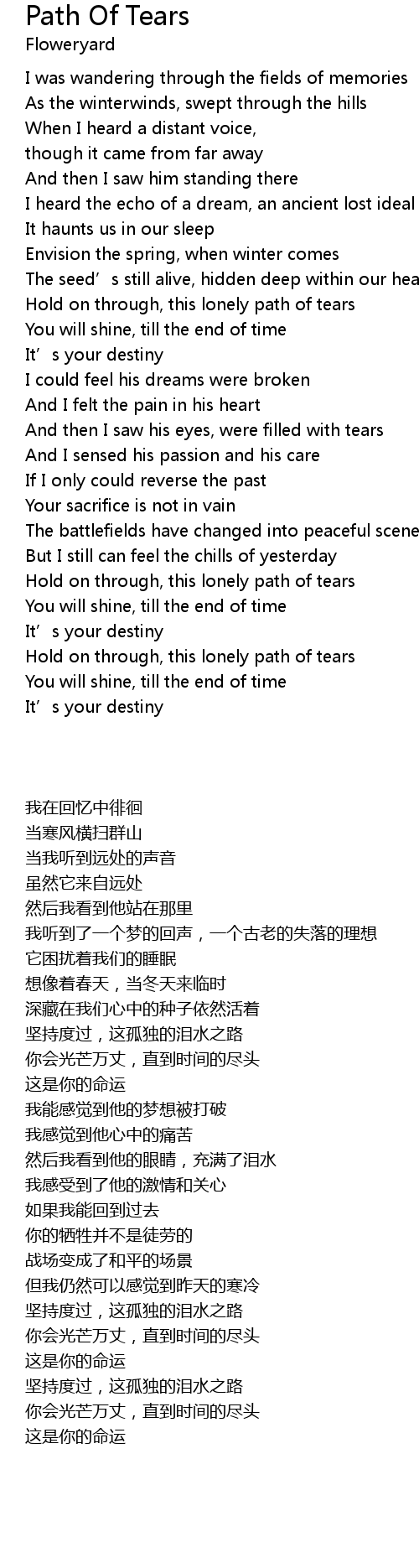 | [03:28.90] | Hold on through, this lonely path of tears |