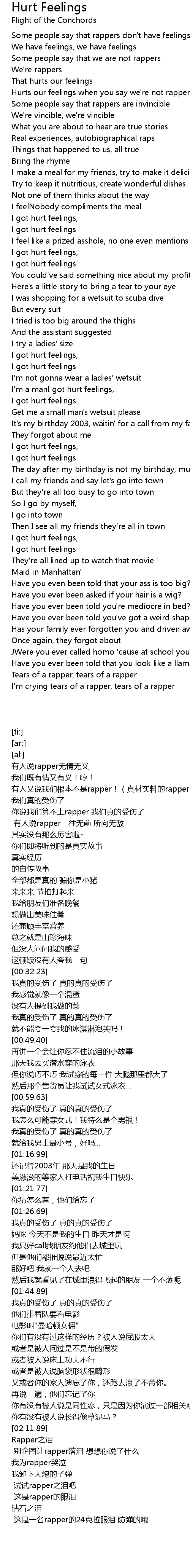 I got hurt feelings, |