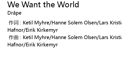 | [00:00.000] | 作词 : Ketil Myhre/Hanne Solem Olsen/Lars Kristian Boquist/Even Hafnor/Eirik Kirkemyr |