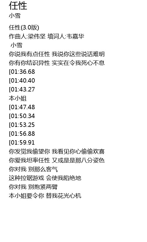 | [00:05.49] | 任性(3.0版) |