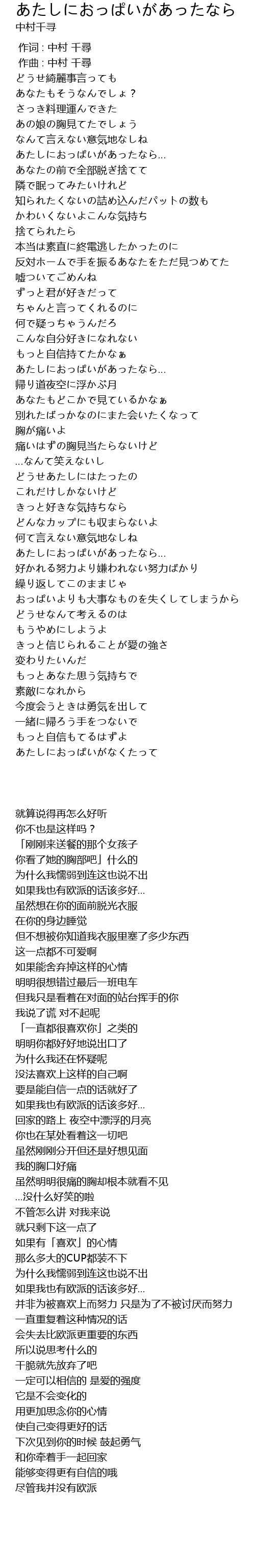| [00:18.38] | あたしにおっぱいがあったなら… |