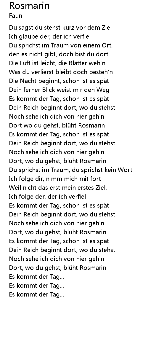 | Dort, wo du gehst, blü ht Rosmarin | |