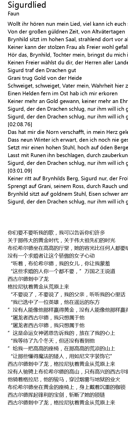 | [02:48.97] | Sigurd, der den Drachen schlug, nur ihm will ich geh ren |