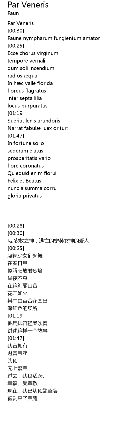 | [00:00] | Faune nympharum fungientum amator |