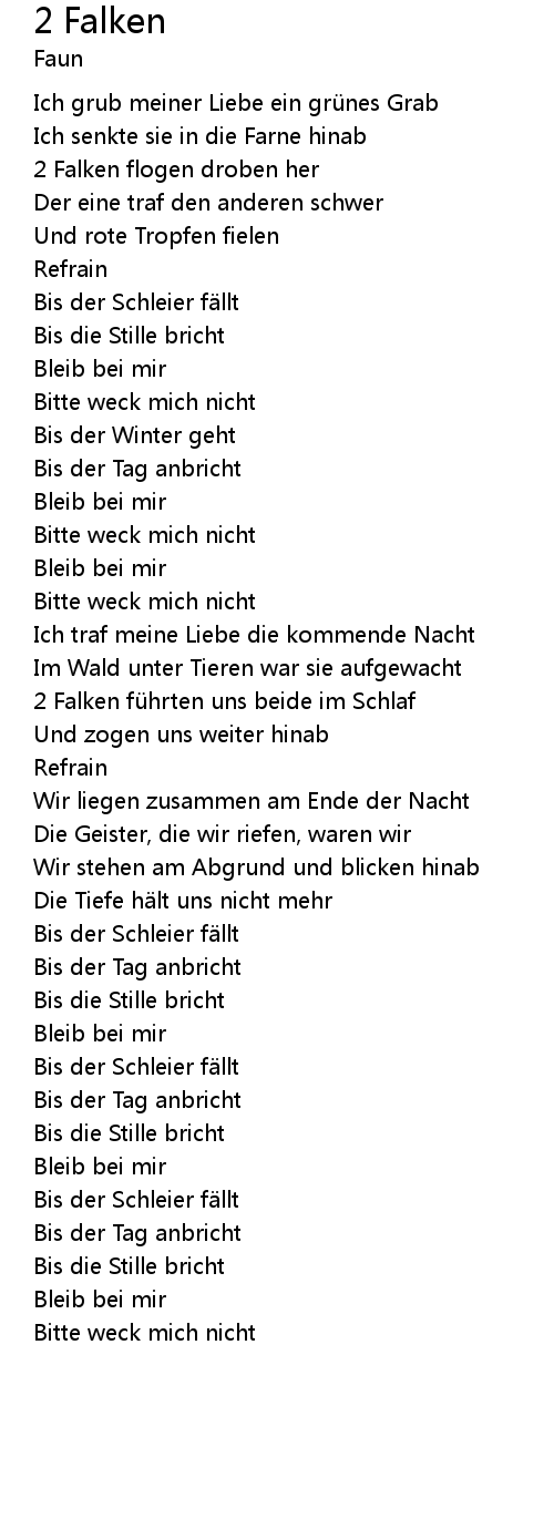 | 2 Falken fü hrten uns beide im Schlaf | |