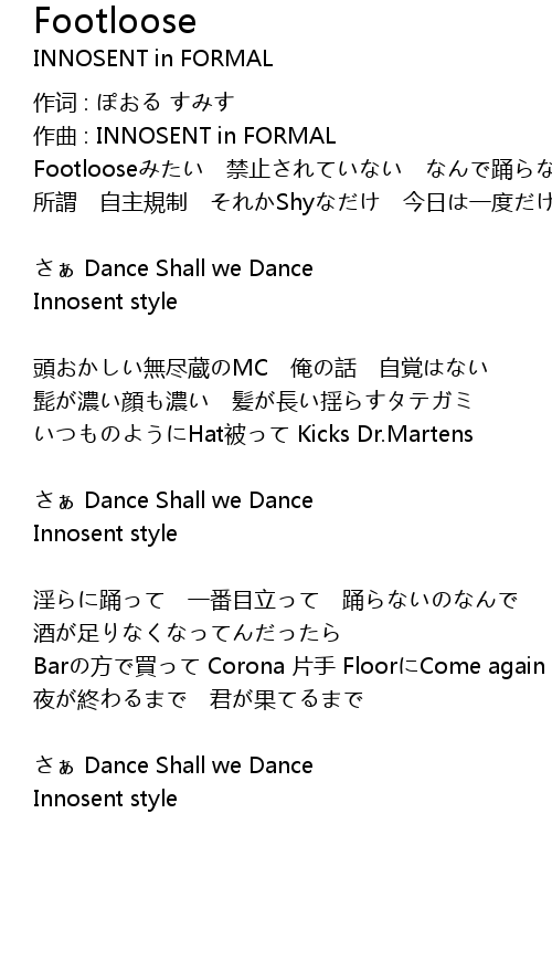 | Footlooseみたい 禁止されていない なんで踊らない 意味が分からない | |