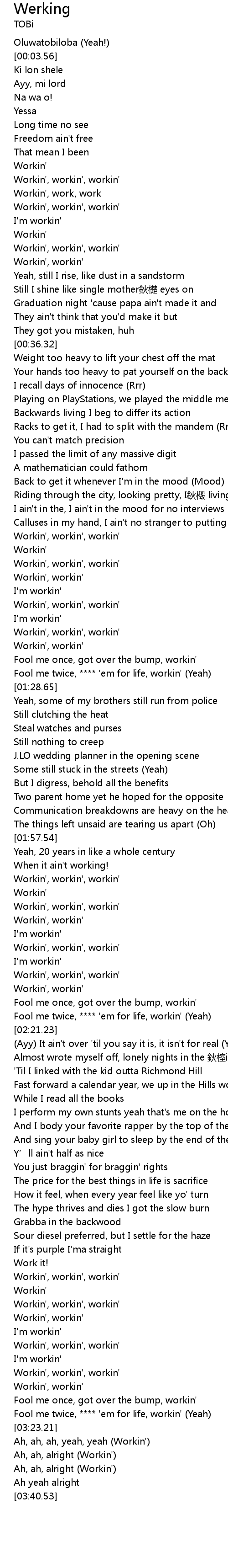 | [03:34.29] | Ah, ah, alright (Workin') |