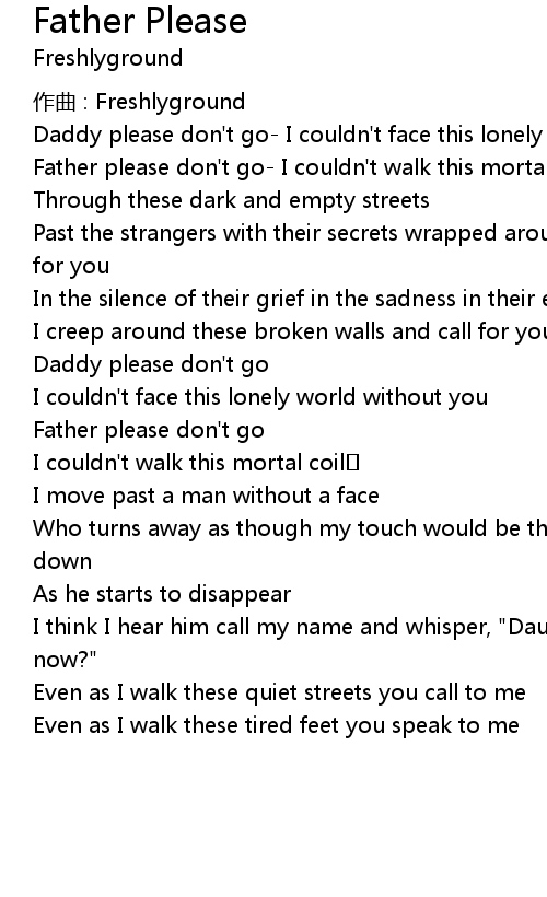 | Father please don't go- I couldn't walk this mortal coil without you here | |