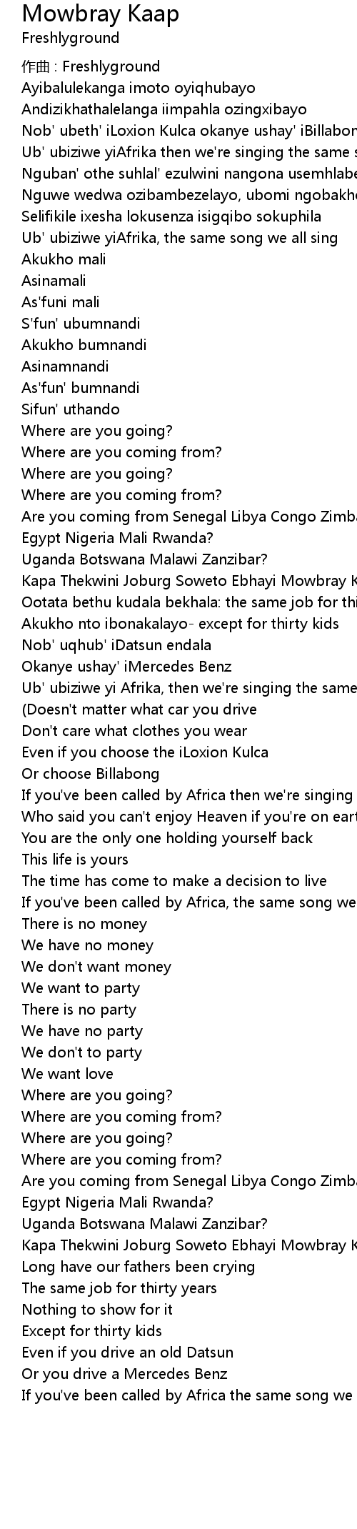 | Ub' ubiziwe yi Afrika, then we' re singing the same song | |