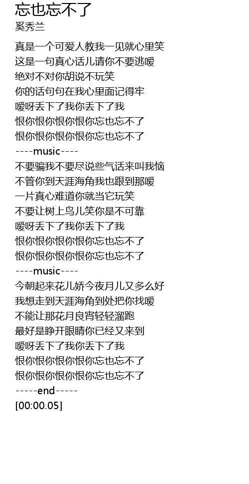 | [00:37.91] | hèn nǐ hèn nǐ hèn nǐ hèn nǐ wàng yě wàng bù liǎo |