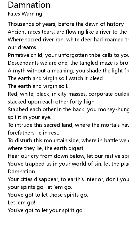 Your cities disappear, to earth's interior, don't you know you've got to let your spirits go, let 'em go. |