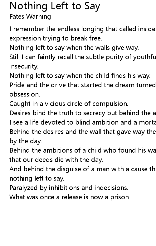 Behind the desires and the wall that gave way there's a forgotten cause consumed by the day. |