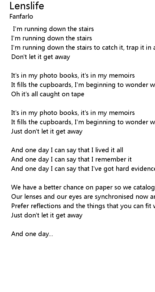 | I' m running down the stairs to catch it, trap it in a lens | |