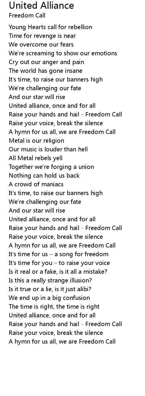 | Raise your hands and hail Freedom Call | |