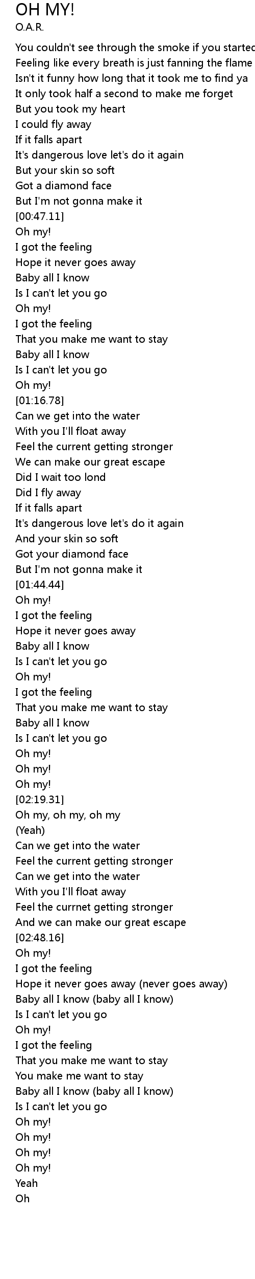 Oh my, oh my, oh my |