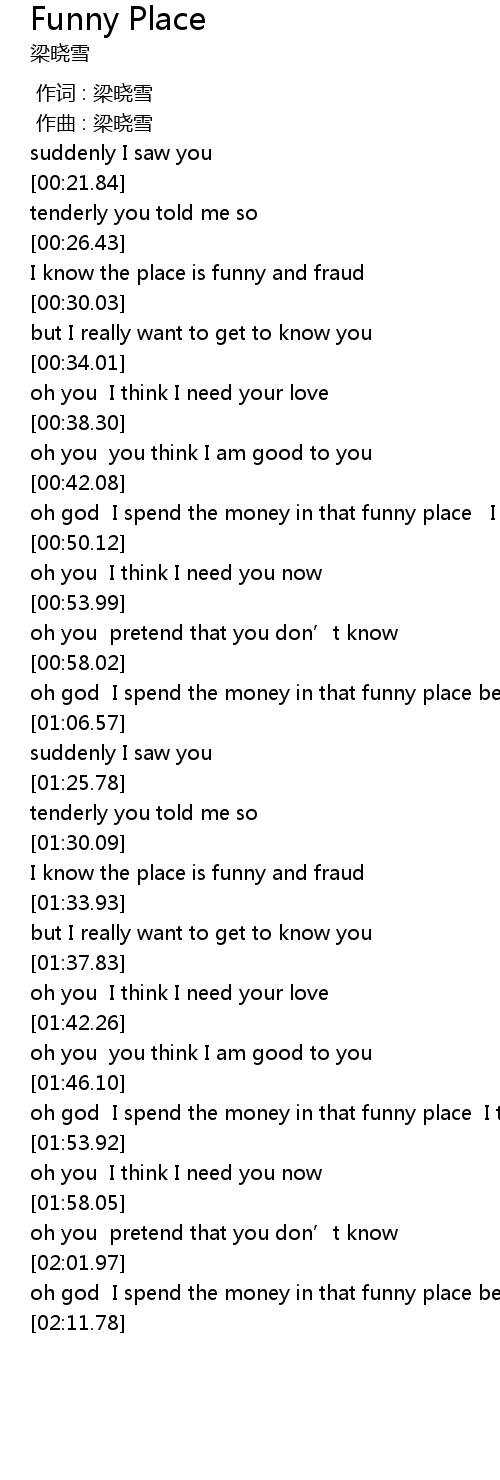 | [01:30.96] | I know the place is funny and fraud |