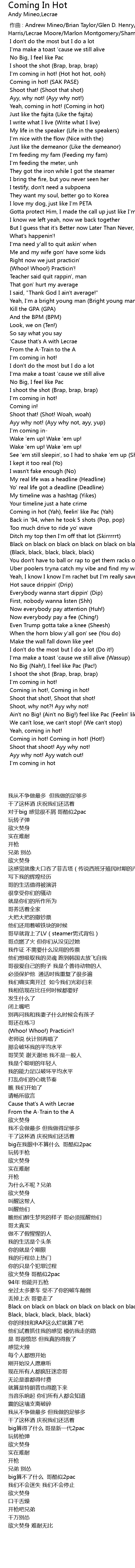 | [02:03.043] | Coming in hot Yah, feelin' like Pac Yah |