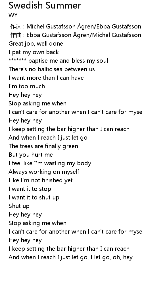 | [00:00.000] | 作词 : Michel Gustafsson Ågren/Ebba Gustafsson Ågren |